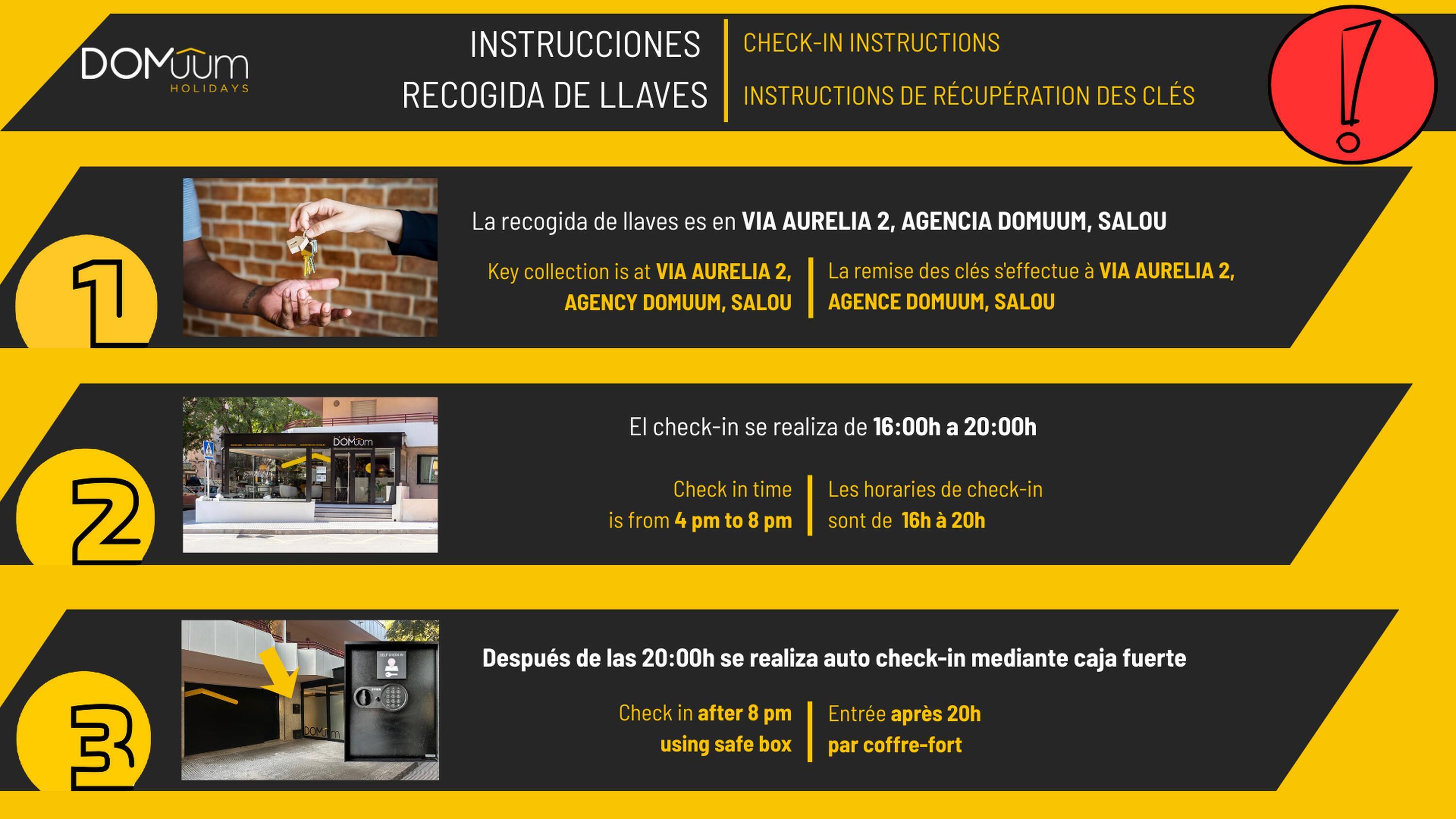 - La recogida de llaves es en la agencia situada en VIA AURELIA 2 IN SALOU de 16:00h a 20:00h