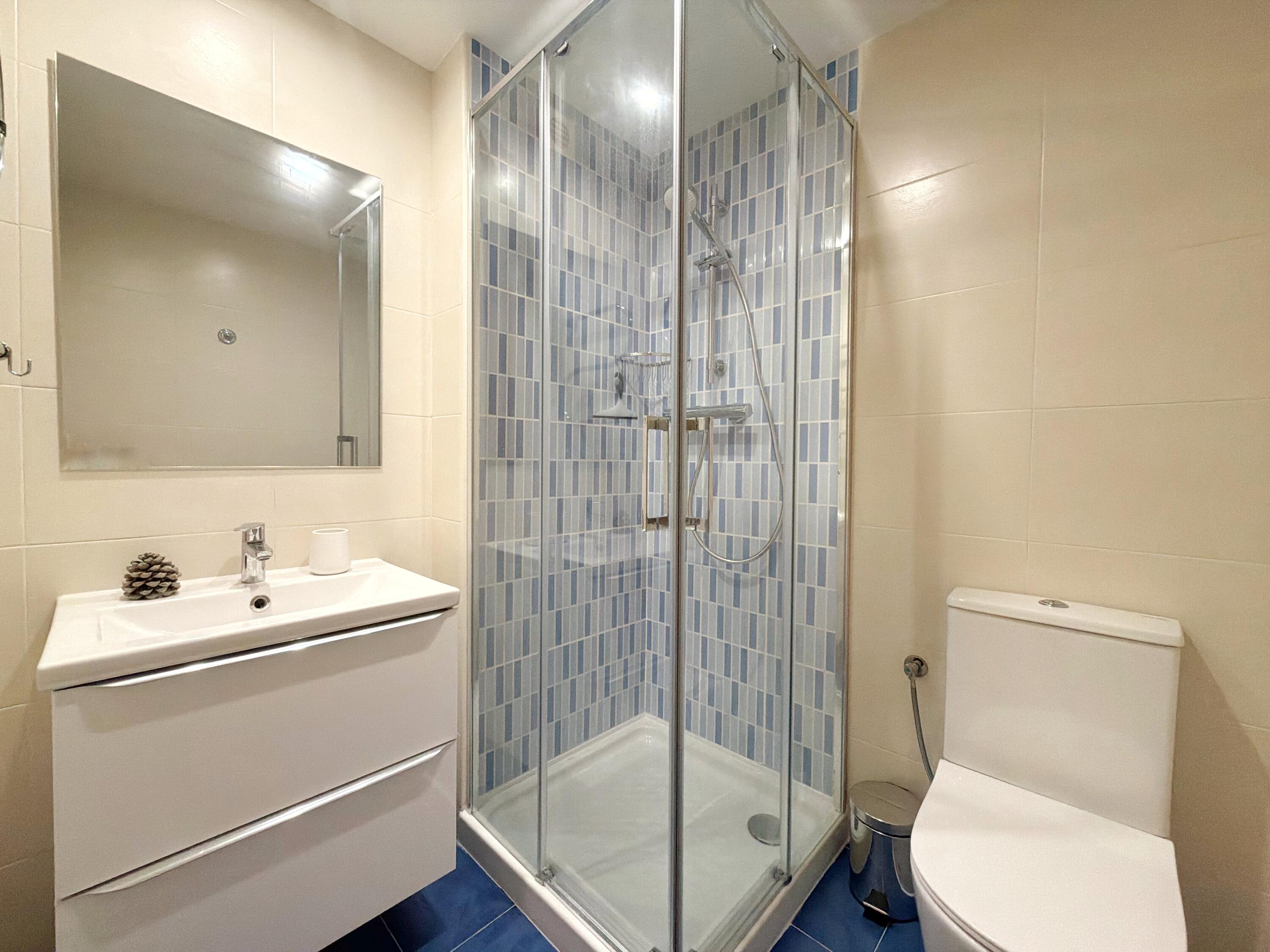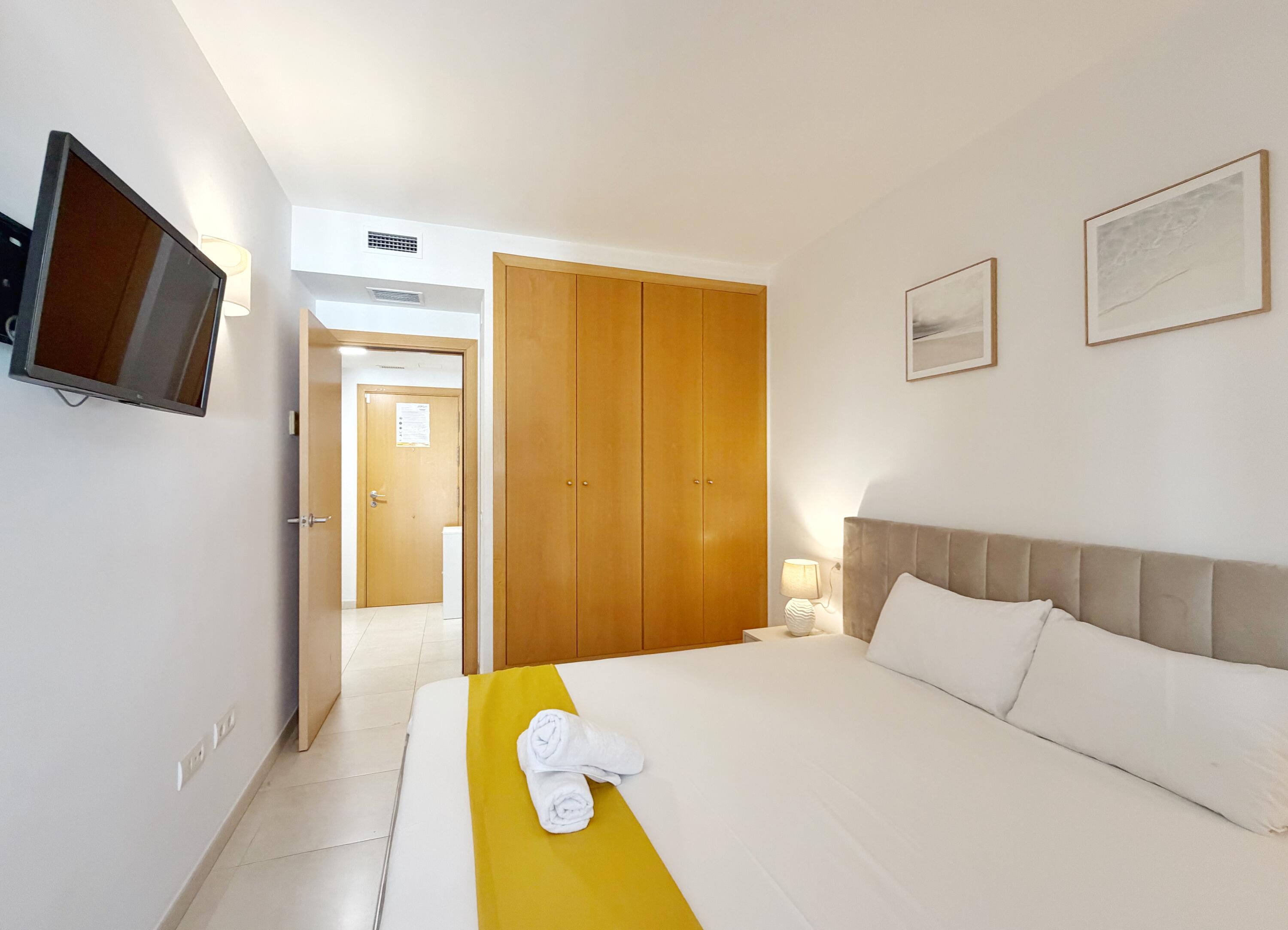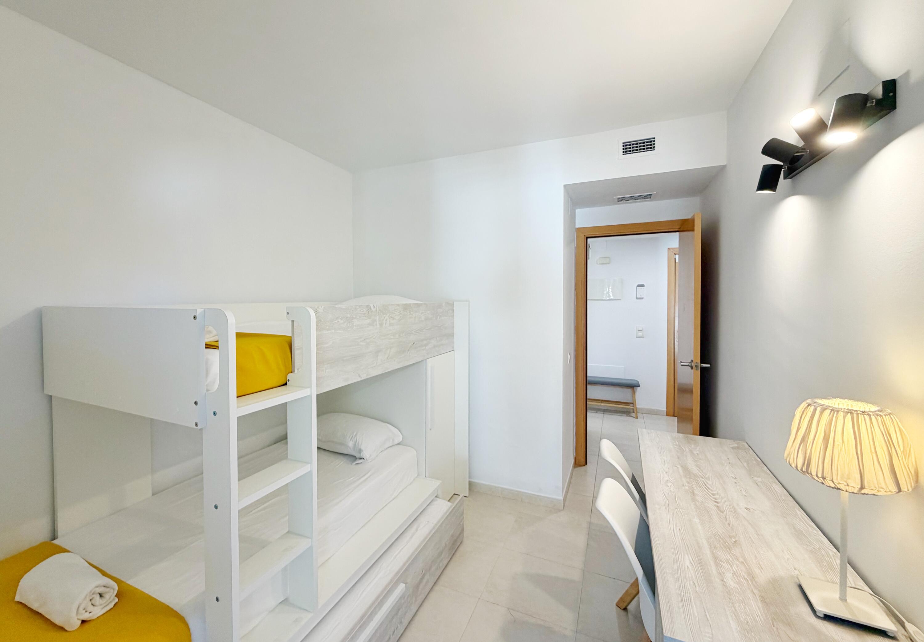 El apartamento Paradise Village incluye, un baño con bañera y otro con ducha, un dormitorios con cama doble, otro con 3 camas individuales y un sofá cama en el comedor. Encontrará ropa de cama, toallas, TV de pantalla plana, y una cocina totalmente equipada con lavadora. El apartamento dispone de wifi gratuito, aire acondicionado y 1 plaza de parking. El complejo residencial dispone de una bonita zona comunitaria con piscina.